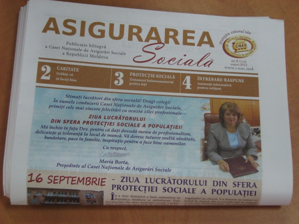 Ziarul poate fi accesat în format electronic pe site-ul Casei Naţionale de Asigurări Sociale www.cnas.md (meniul din stînga). În acest număr veţi afla despre alte forme de susţinere socială stipulate în Legea nr.160 din 05.07.2012, intrată recent în vigoare; modalitatea repartizării de către CNAS a biletelor de tratament balneosanatorial; despre casa de copii de tip familial a soţilor Manza din satul Fîrlădeni, raionul Căuşeni; cîte întrebări şi la ce temă au fost adresate angajaţilor punctului de consultaţii gratuite al CNAS.