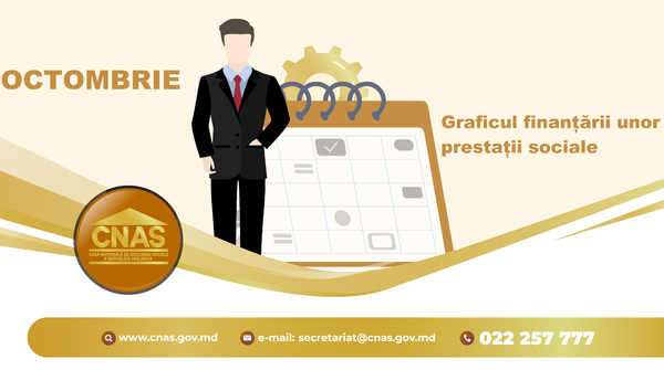 Pentru comoditatea beneficiarilor unor prestații sociale, Casa Naţională de Asigurări Sociale anunță regimul finanțării pentru luna octombrie.