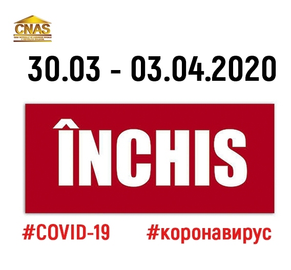 În conformitate cu DISPOZIȚIA Comisiei pentru Situații Excepționale nr. 6 din 26 martie 2020, începând cu 30 martie până la 3 aprilie, curent, angajații din sectorul bugetar nu vor merge la muncă. Această decizie se referă și la specialiștii Casei Naționale de Asigurări Sociale. Măsurile restrictive au fost luate pentru a preveni răspândirea pandemiei de coronavirus.