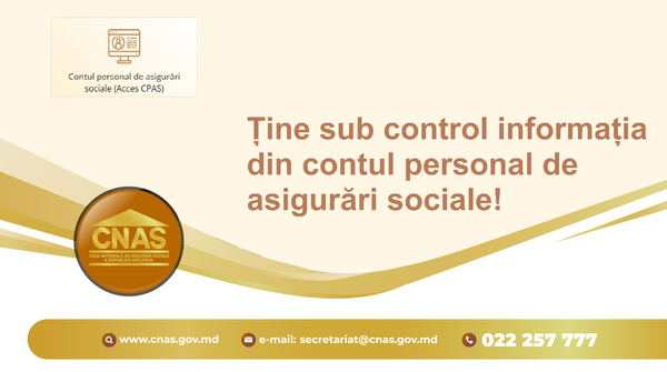 Casa Națională de Asigurări Sociale reamintește că, serviciul electronic de pe pagina oficială este opțiunea ce permite oricărei persoane asigurate să monitorizeze online starea contului personal de asigurări sociale, adică a accesa și vizualiza datele despre achitarea contribuţiilor de asigurări sociale declarate de angajator pentru perioada de după 1 ianuarie 1999, precum și poți urmări formarea viitoarei pensii.